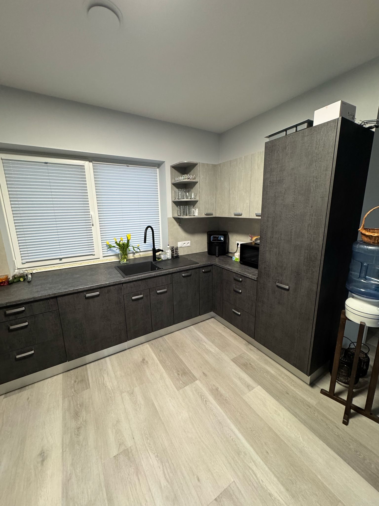 Кухонные шкафчики имеют регулируемых ножки (100, 120, 150 мм), которых можно прикрыть цоколем из пластика или ДСП.